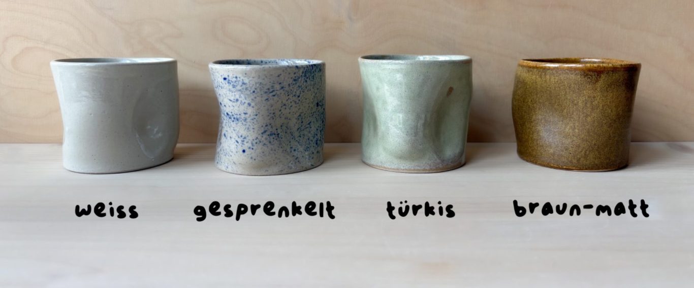 Hier ein Beispiel zu den Glasuren, die euch für eure getöpfterten Stücke zur Auswahl stehen: